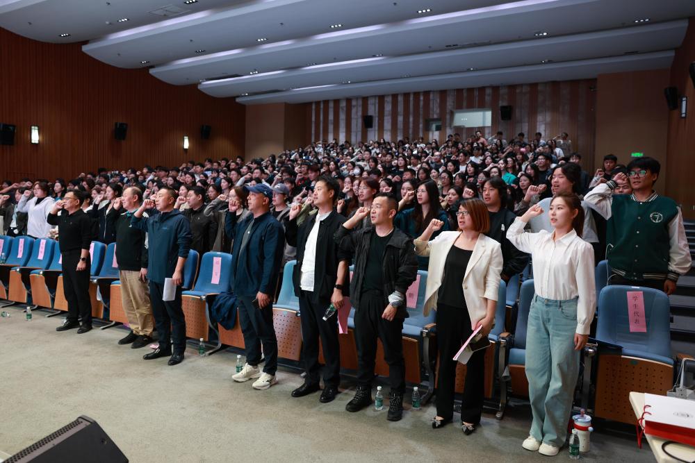 入学教育环节,科研处处长董孟怀围绕科学道德与学术规范开展专题讲座。学生处处长刘军就思政教育与学生管理提出明确要求。全体新生庄严宣誓,承诺恪守学术道德、争做学风表率。