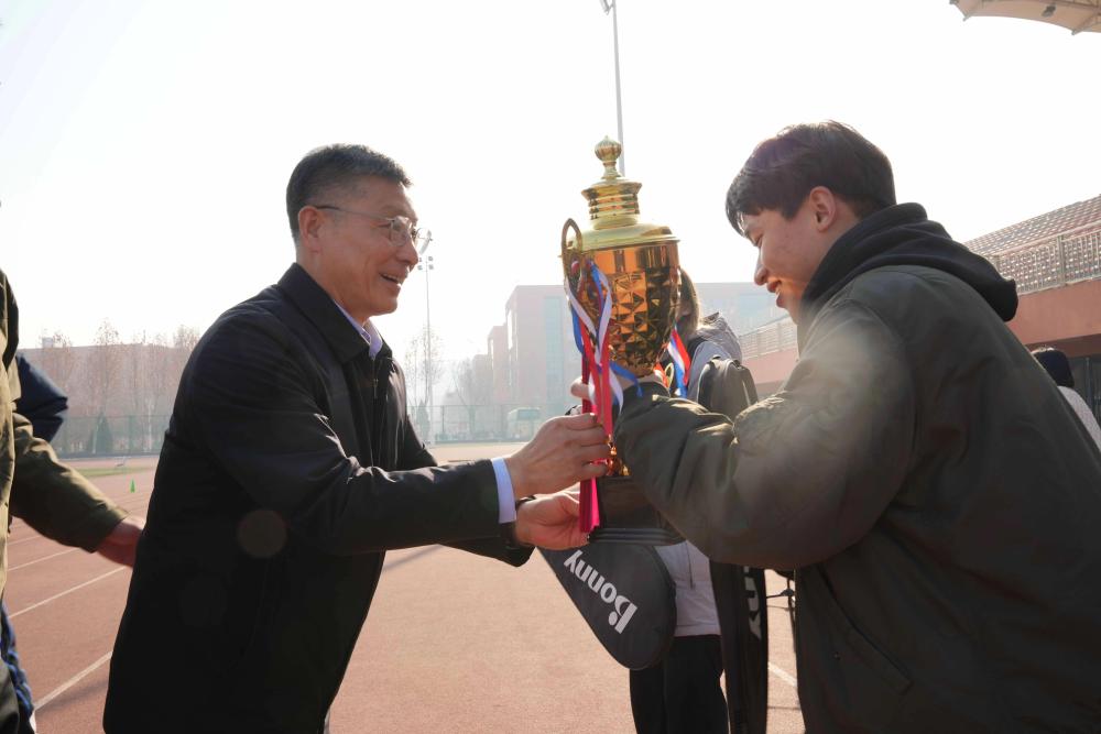 高晓峰副校长致辞,充分肯定了赛事成效,并向所有辛勤付出的工作人员、裁判员及奋勇拼搏的运动员表示衷心感谢,对获奖选手表示祝贺。他强调,体育是校园文化的重要组成部分,不仅能增强身体素质,更能锤炼意志品质、培养团队精神,希望全体师生以本次赛事为契机,积极参与体育锻炼,在运动中收获健康与快乐,以昂扬姿态投入到学习与工作中。